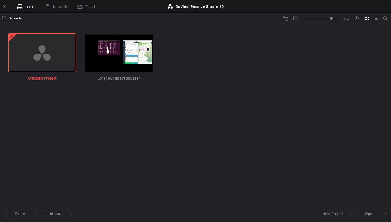 Запускаем DaVinci Resolve. При старте открывается окно Project Manager. Создаём новый проект, нажимая кнопку New Project, задаём любое имя (например, Test) и нажимаем Create.
