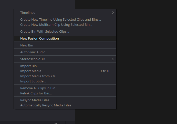 Во вкладке Edit создаём Fusion Composition(5 секунд обычно хватает для титра) и переходим во вкладку Fusion.