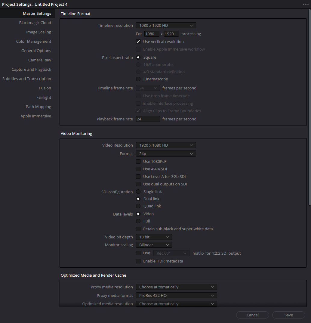 Чтобы видео корректно отображалось в формате Reels или Shorts, заходим в File → Project Settings и включаем опцию Use Vertical Resolution.