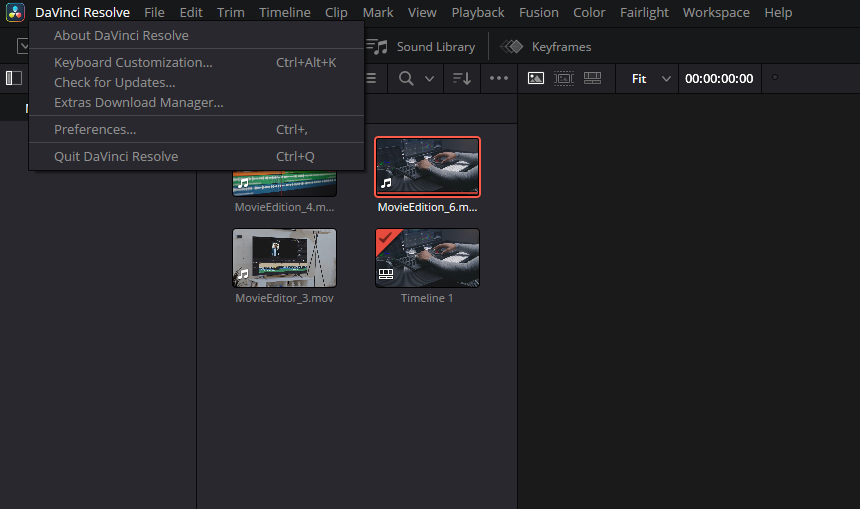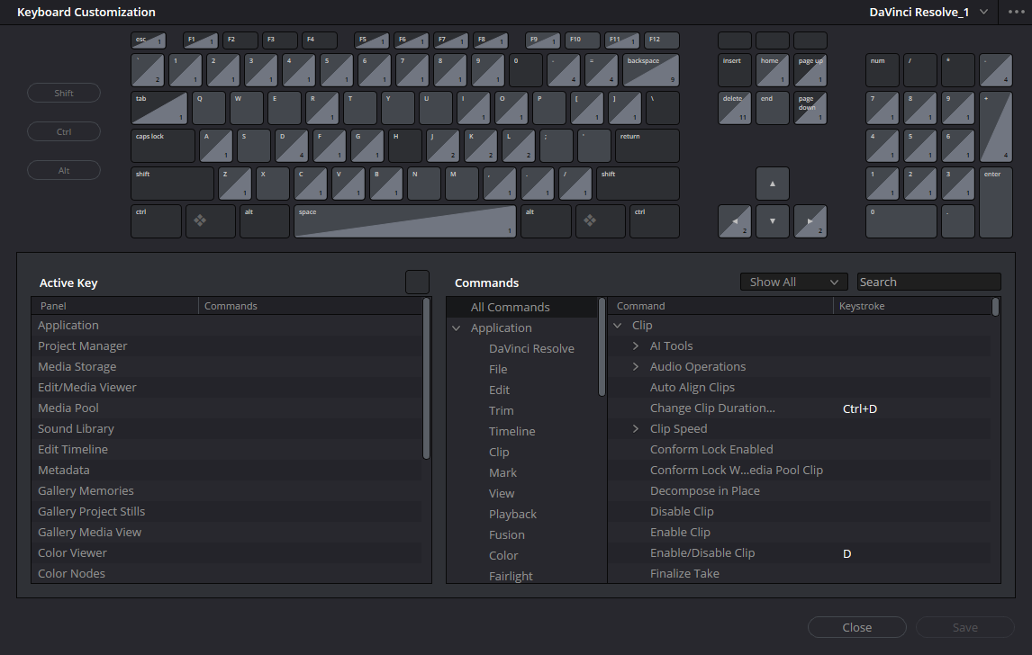 - через меню DaVinci Resolve → Keyboard Customization;