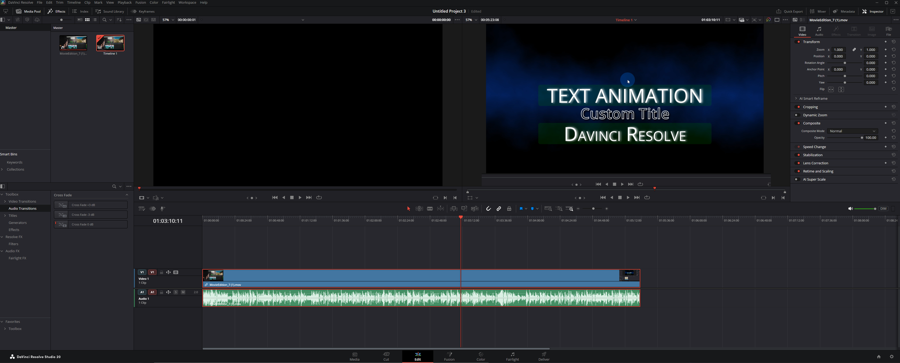 Анимация текста в DaVinci Resolve без Fusion